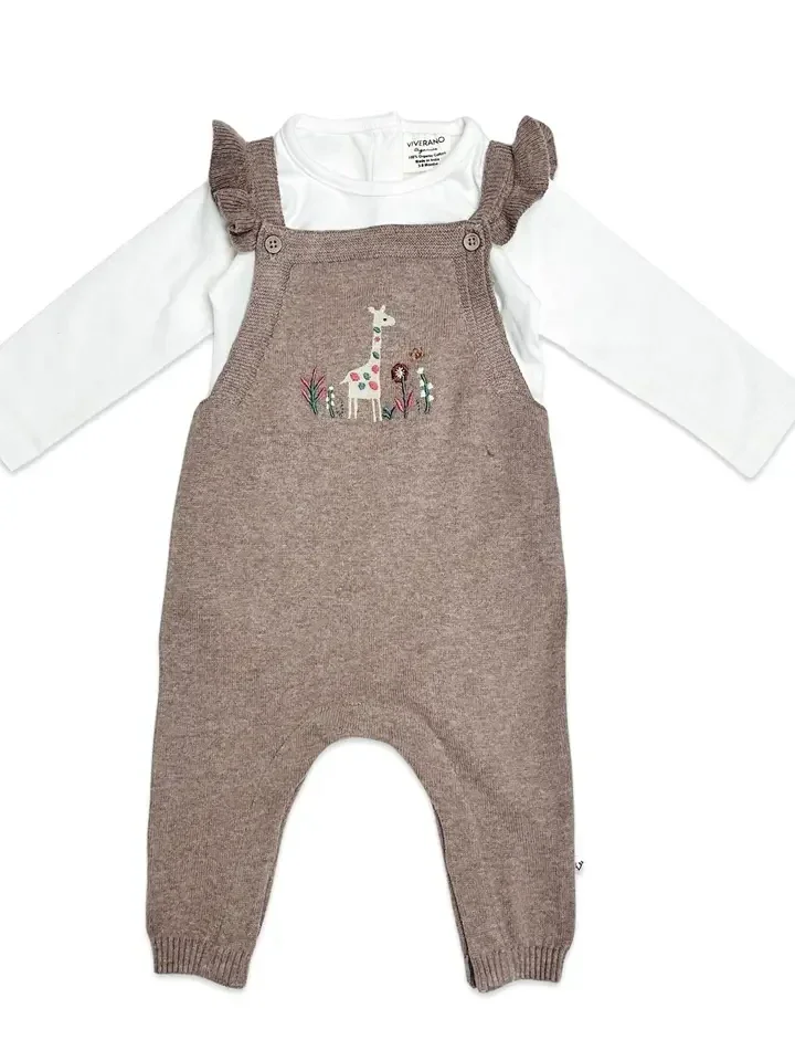 Ensemble de combinaison à volants brodés en forme de girafe pour petite fille (biologique) - Viverano