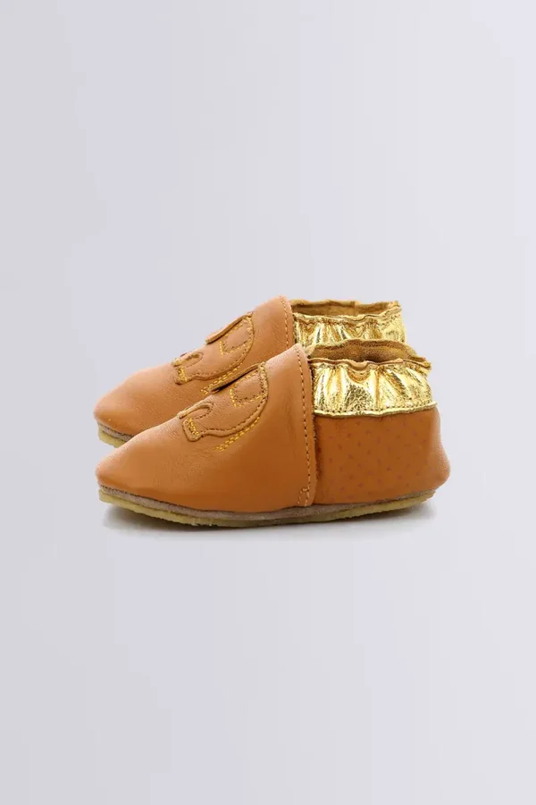 Découvrez notre modèle exclusif "cute elephant" de la marque ROBEEZ : une paire de chaussons souples pour bébé confectionnée avec soin. Ces chaussons se distinguent d'une tige en cuir en tannage végétal de couleur camel , et une doublure en cuir de ton naturel à 70 % et en textile à 30 %. La semelle souple en 100 % cuir de ton naturel à l'intérieur et en crêpe à l'extérieur assure une protection optimale du pied de votre bébé. Ce modèle s'ajuste parfaitement au pied de votre tout-petit grâce à sa fermeture élastique, facilitant ainsi l'enfilage tout en assurant un maintien optimal de la cheville. Offrez le meilleur à votre enfant en commandant dès maintenant sur notre site O'Baby. L'équipe ROBEEZ vous recommande de nettoyer délicatement les chaussures avec du lait nettoyant en petite quantité, à l'aide d'un chiffon doux en effectuant des mouvements circulaires, puis de laisser sécher pendant au moins une heure. À noter, le cuir nécessite un entretien régulier pour conserver sa qualité et son éclat. Profitez dès maintenant de cette pièce unique pour votre bébé !
