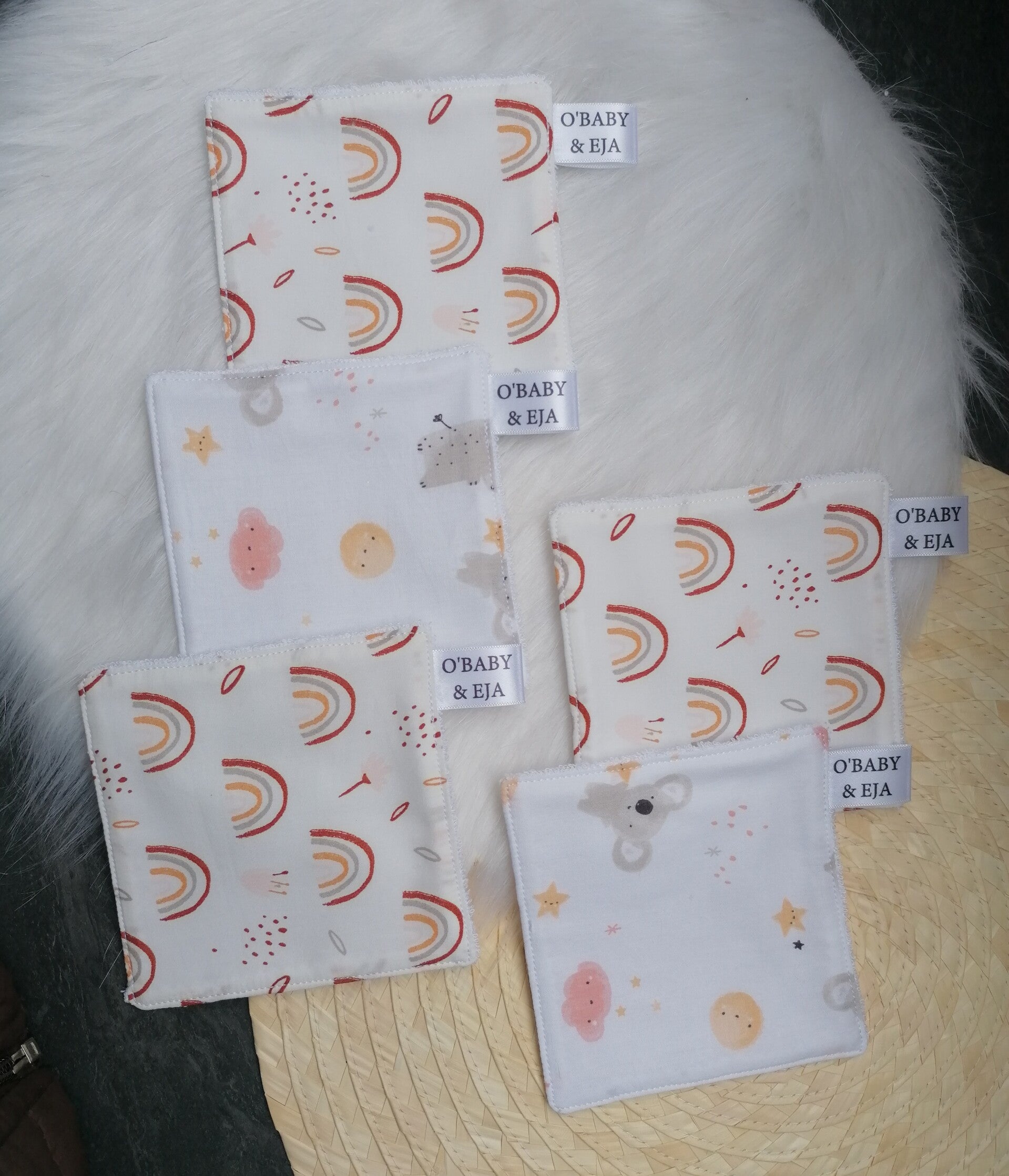 Lot de 5 carrés douceurs réutilisable Fabrication Artisanale - O'Baby&EJA