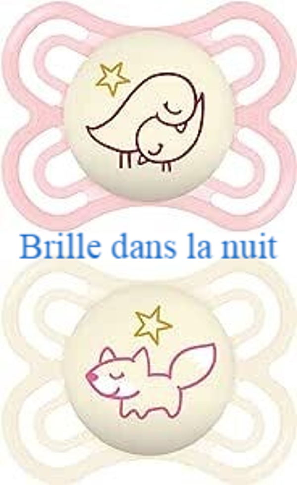 Sélection mode nuit très pratiques, ces sucettes disposent d'un bouton qui facilitera l'accroche à une attache-sucette et vous aidera à la retrouver la nuit. Ce bouton vous permettra aussi d'ôter rapidement et facilement la sucette de la bouche de bébé si besoin.