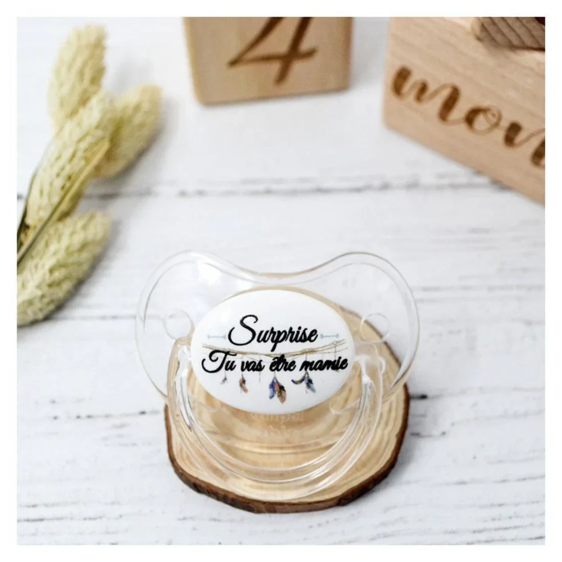 Sucette "Veux-tu être mon parrain ?" ou "Surprise tu vas être papi/mamie"