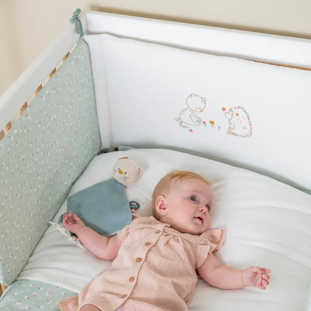 Transformez la chambre de votre enfant en un cocon de douceur avec le tour de lit Mila, Lana et Zoé 🌸 Ce magnifique tour de lit, orné de motifs brodés du chat Lana et du hérisson Zoé, crée une atmosphère paisible, propice au sommeil.