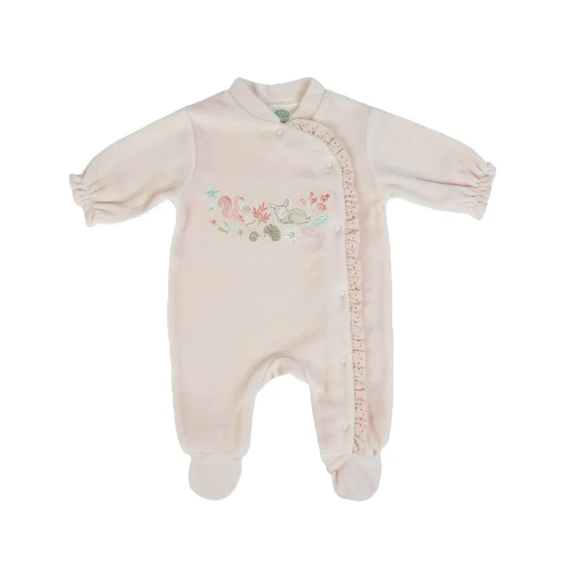 Pyjama bébé fille Rose Poudré en Velours Biologique - Thème Forêt taille au choix