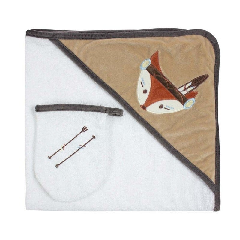 Cette délicate parure de bain "Indian Spirit" est le cadeau de naissance idéal pour envelopper bébé de douceur après son bain. Avec son charmant motif renard, elle est confectionnée à 100 % en coton doux. La cape mesure 72 x 72 cm, tandis que le gant de toilette assorti fait 19 x 13 cm. Pour préserver sa qualité, veillez à la laver à 30° maximum avec des produits adaptés au linge délicat, ne pas utiliser l'eau de javel et le sèche-linge. Repassez-la à une température maximale de 110° sans vapeur. Offrez à votre bébé un moment de douceur et de confort avec cette parure de bain irrésistiblement câline.