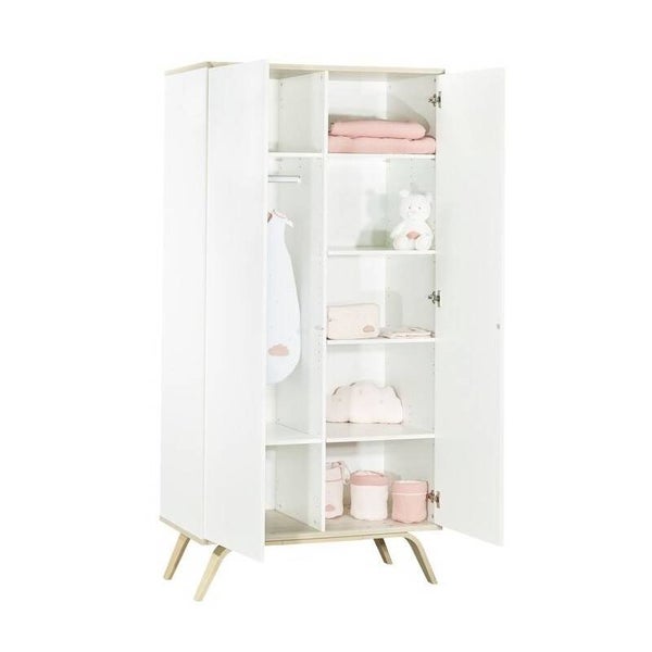 Séparation verticale et 6 tablettes intérieures, en panneaux de particules mélaminés décor blanc.