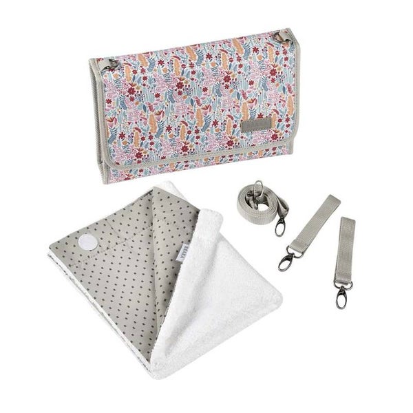 Pratique et compact elle permet d’emporter les essentiels pour langer bébé dans une petite pochette nomade très jolie.