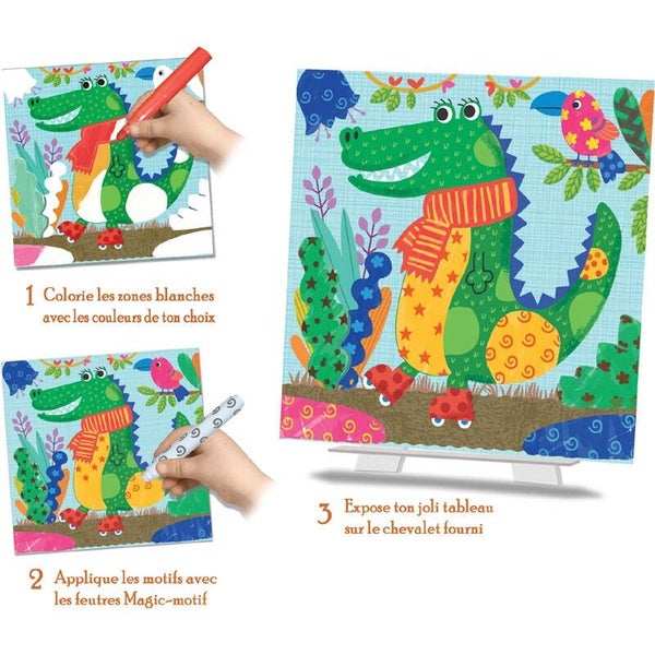 Avec les feutres magiques, vos enfants pourront voir leurs dessins prendre vie sous leurs yeux. Chaque coup de feutre révèle des couleurs éclatantes et des motifs surprenants ! Grâce aux stylos magiques motifs fournis, ils auront la possibilité de personnaliser leurs créations avec des designs fantastiques. Laissez libre cours à leur imagination !