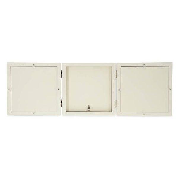 Le cadre contient un espace pour mettre une jolie photo et deux espaces pour mettre les empreintes de mains et de pieds de bébé que vous avez réalisées avec l'argile.
