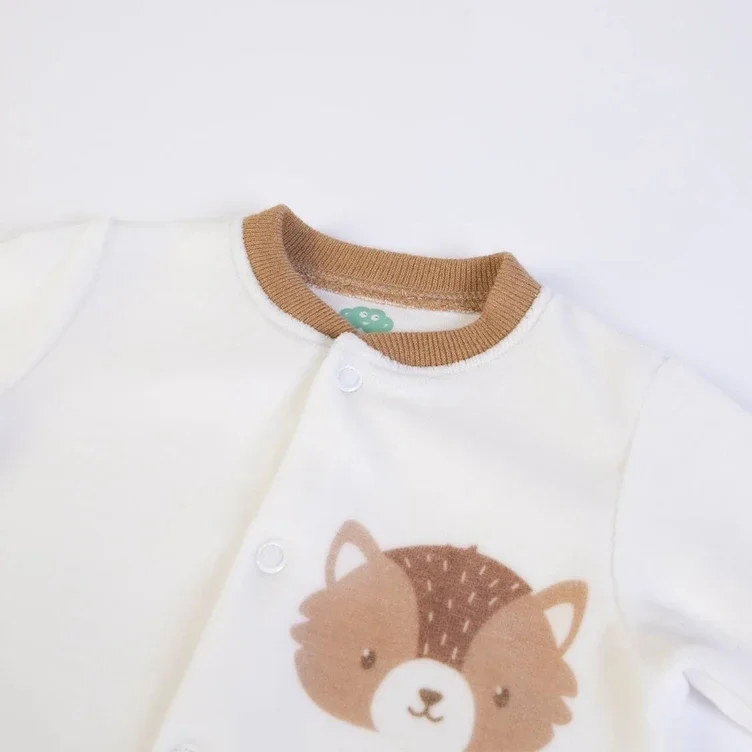 À l’avant, une ouverture frontale pratique facilite l’habillage, rendant les soirées et les matins encore plus simples. Mais ce qui rend ce pyjama vraiment spécial, c’est son adorable motif : rencontrez Roxy le renard, un petit personnage attendrissant qui apportera une touche de magie et de joie à chaque nuit !